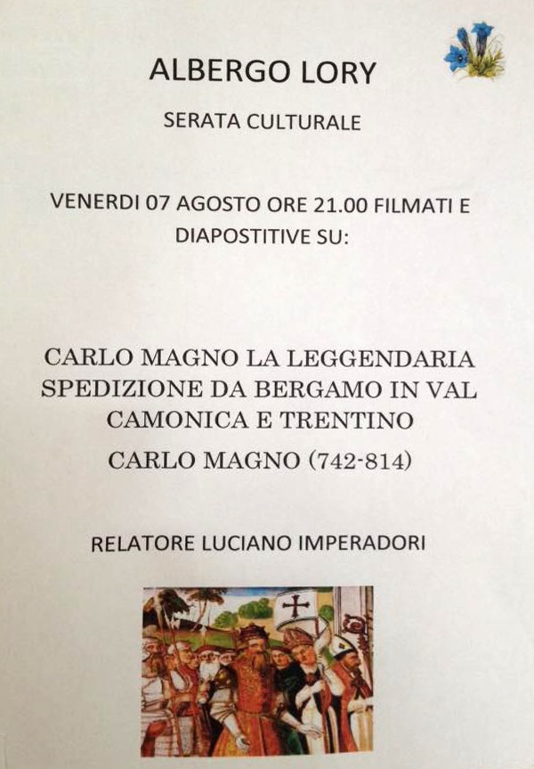 Venerdì 7 Agosto ore 21. Carlo Magno la Leggendaria spedizione. Hotel Lory Pinzolo