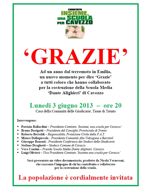 • Ad un anno dal terremoto in Emilia, un nuovo momento ringraziare