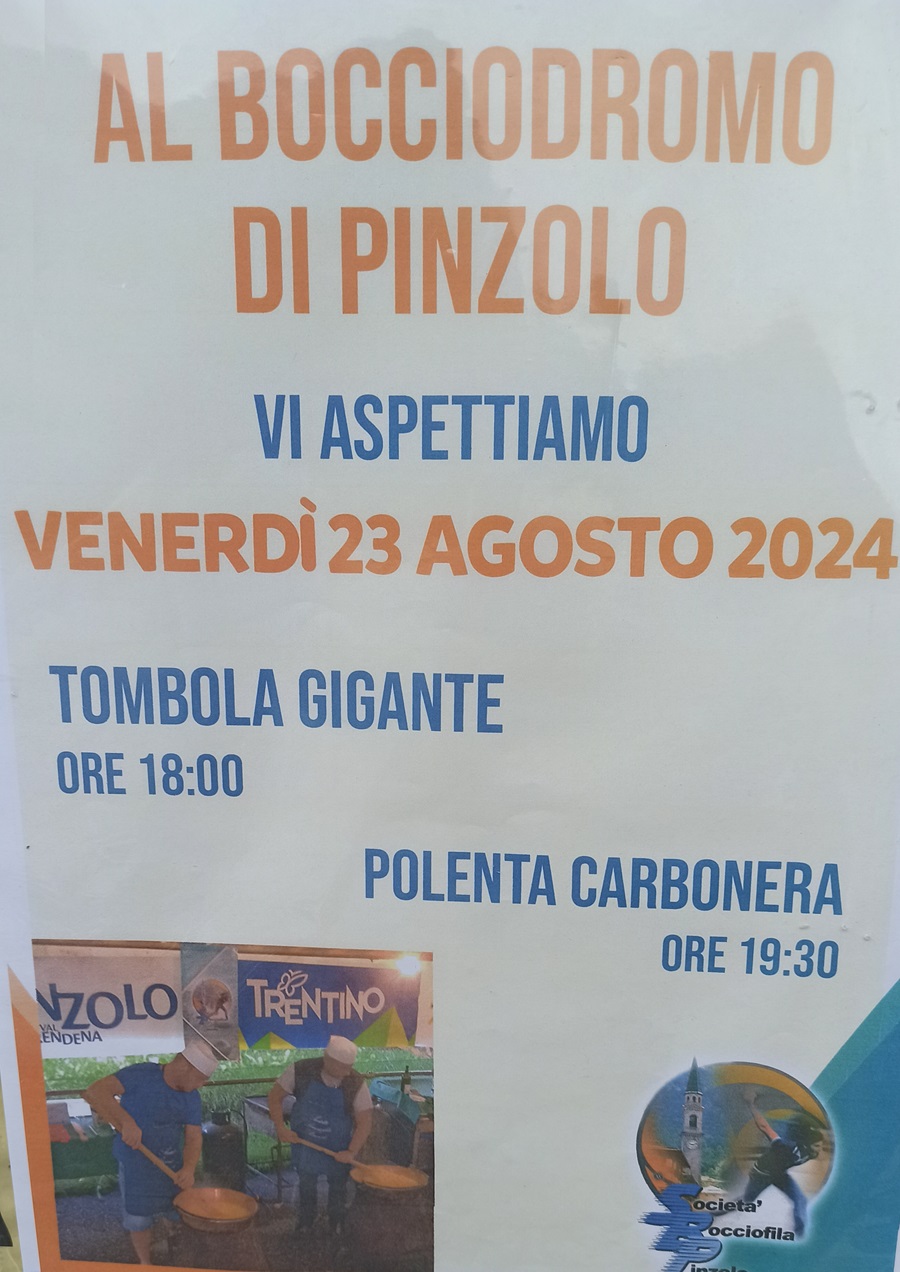 • Bocciodromo Pinzolo Venerdì 23 agosto: Tombola gigante e Polenta carbonera