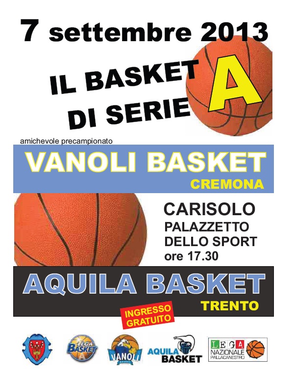 • Carisolo 7 settembre – Basket Vanoli Cremona – Aquila Trento