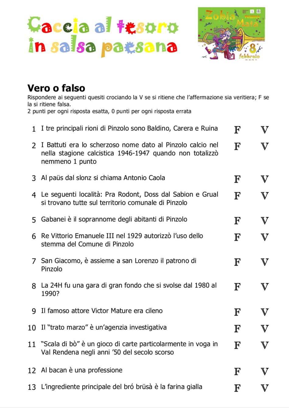 Le schede per giocare sono a disposizione presso la biblioteca comunale di Pinzolo dove vanno restituite compilate entro mercoledì sera. La premiazione avrà luogo in concomitanza con la festa della Zobia mata.