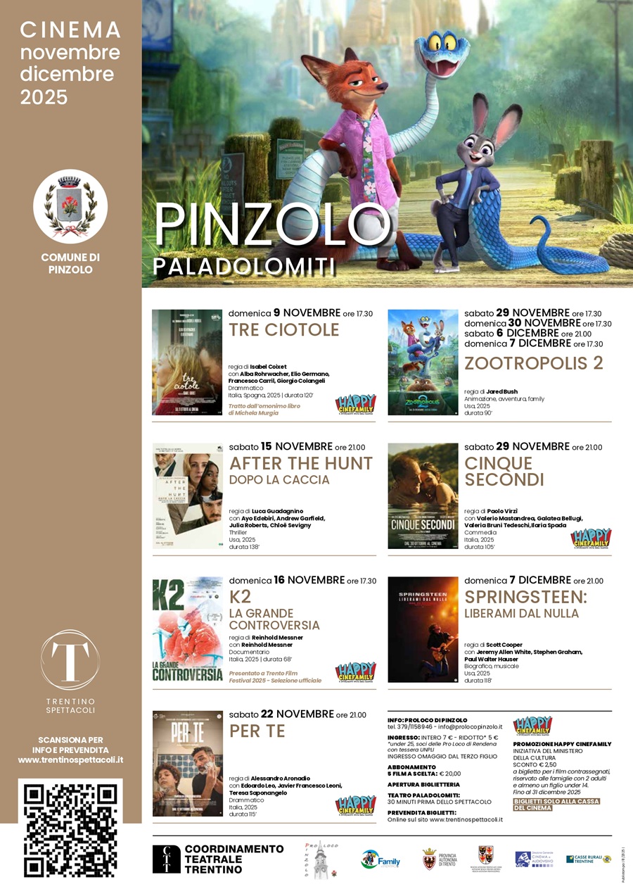 • Cinema a Pinzolo: Programmazione novembre/dicembre 2025
