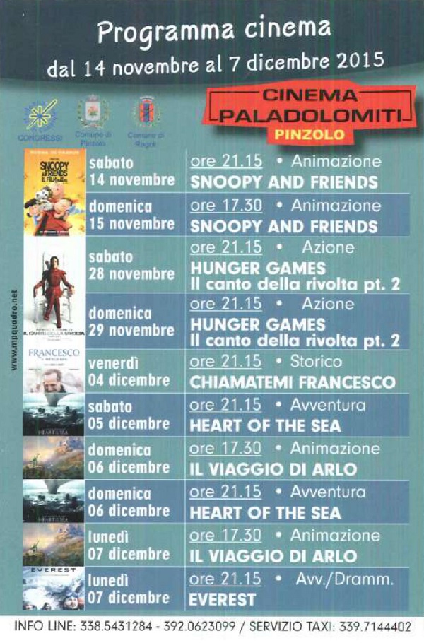 Cinema a Pinzolo: Domenica 26 ottobre ore 17.30