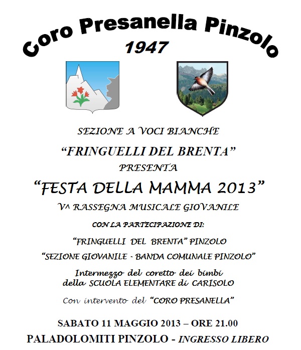 Pinzolo Paladolomiti Martedì 28 ottobre ore 20.50 “Concerto solidarietà”