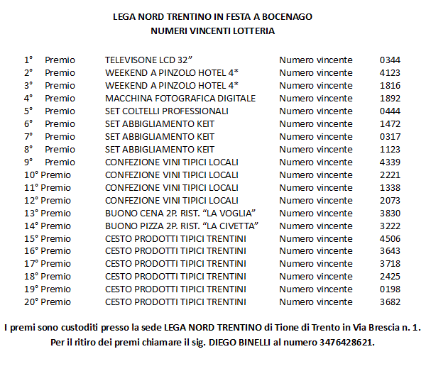 • Elenco dei numeri vincenti della lotteria di Bocenago