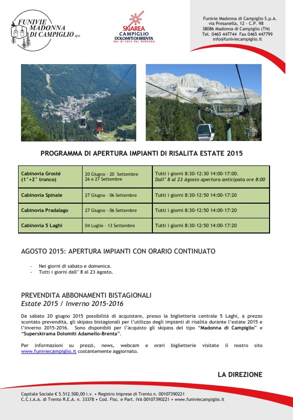 • Funivie Campiglio – Apertura estate 2015