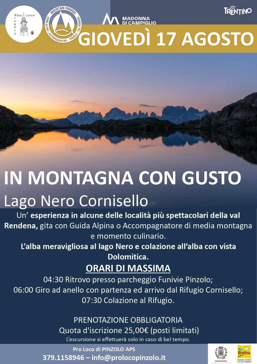 • Giovedì 17 agosto – “In montagna con gusto” escursione al Lago Nero Cornisello