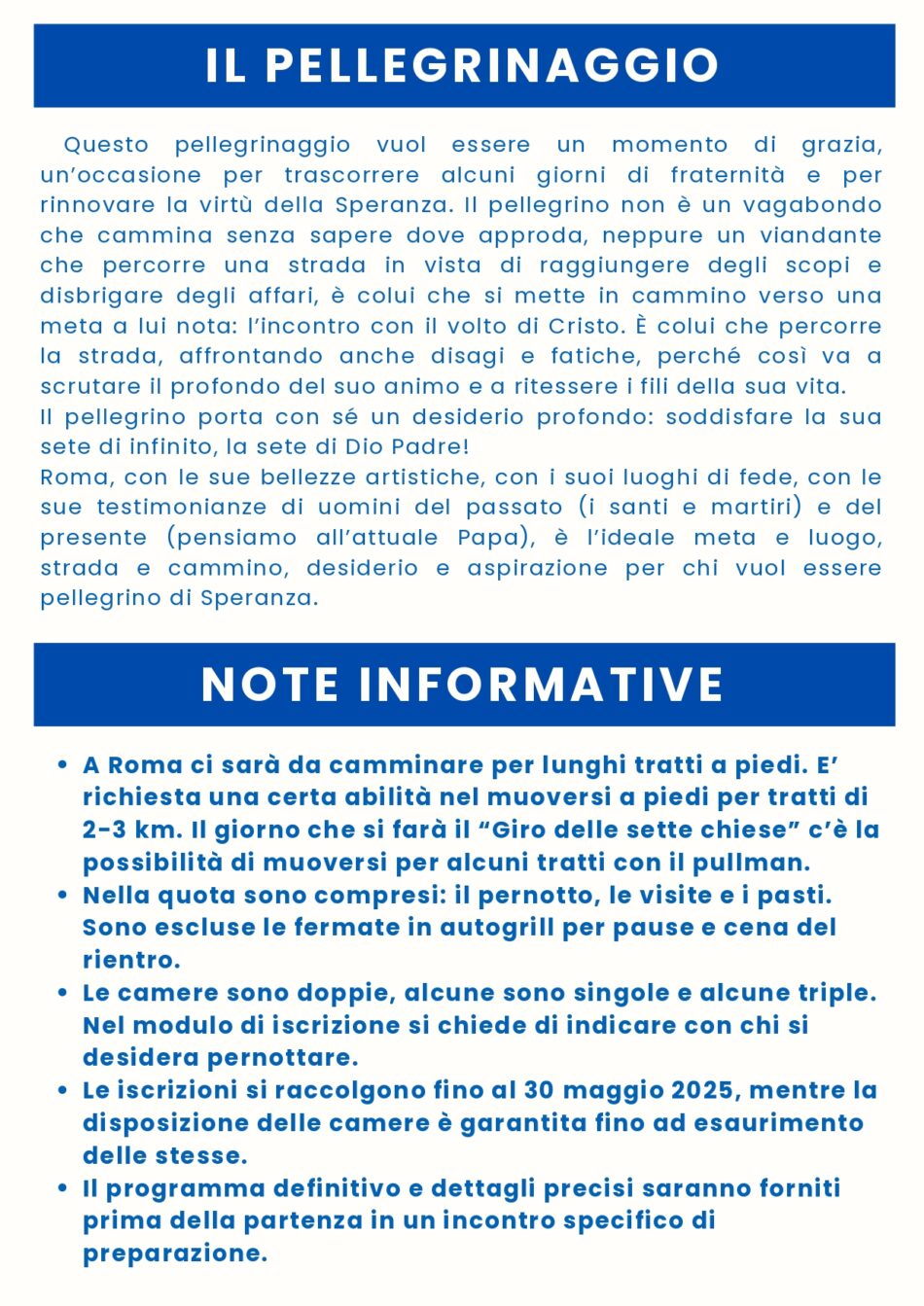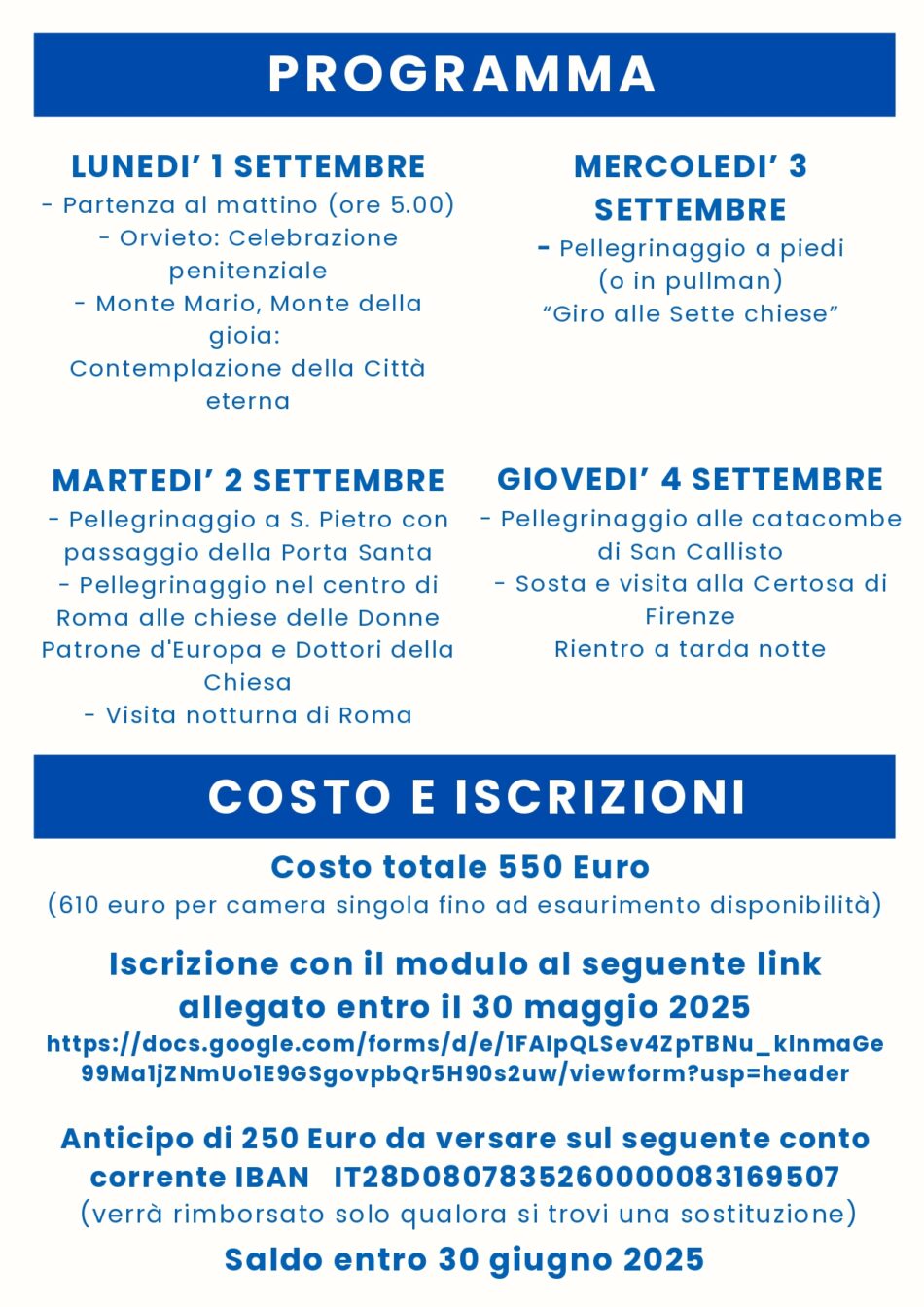 Giubileo 2025 Pellegrinaggio  delle Parrocchie della Val Rendena dal 1° al 4 settembre 2025