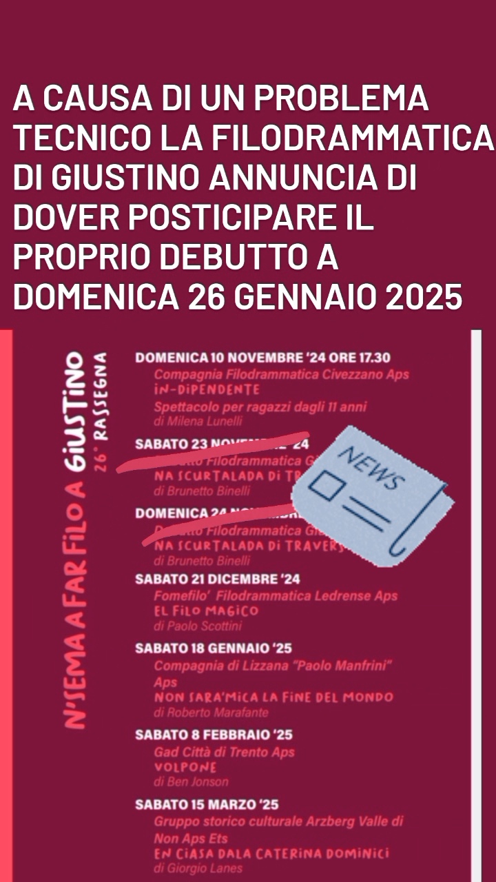 • Giustino – Slittamento Debutto Filodrammatica