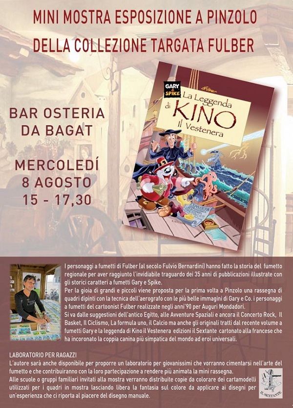 Si terrà mercoledì 8 agosto a Pinzolo presso l’osteria da Bagat, dalle 15.00 alle 17.30 una mini esposizione della collezione targata Fulber. Per l’occasione il cartonist sarà disponibile per un laboratorio per giovanissimi che vorranno cimentarsi nell’arte del fumetto.