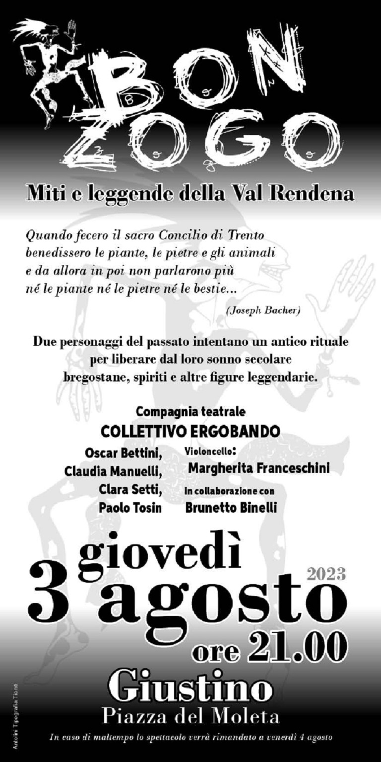 • “MITI E LEGGENDE DELLA VAL RENDENA” – Giovedì 3 Agosto 2023 alle ore 21.00, Piazza del Moleta a Giustino