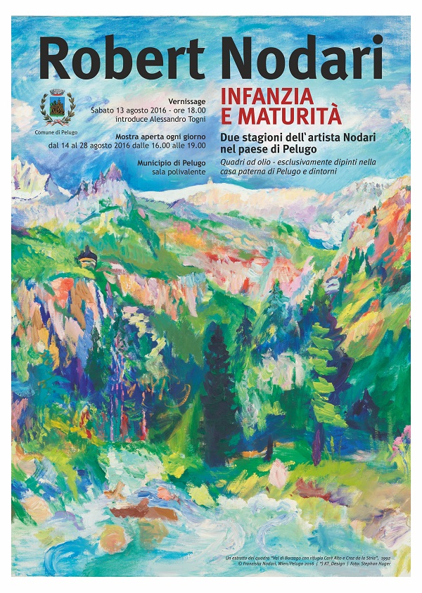In occasione del 70° Anniversario della sua nascita si terrÁ a Pelugo la mostra “Due stagioni dell’artista Nodari nel paese di Pelugo: infanzia e maturitÁ ” con quadri ad olio esclusivamente dipinti nella casa paterna e dintorni.