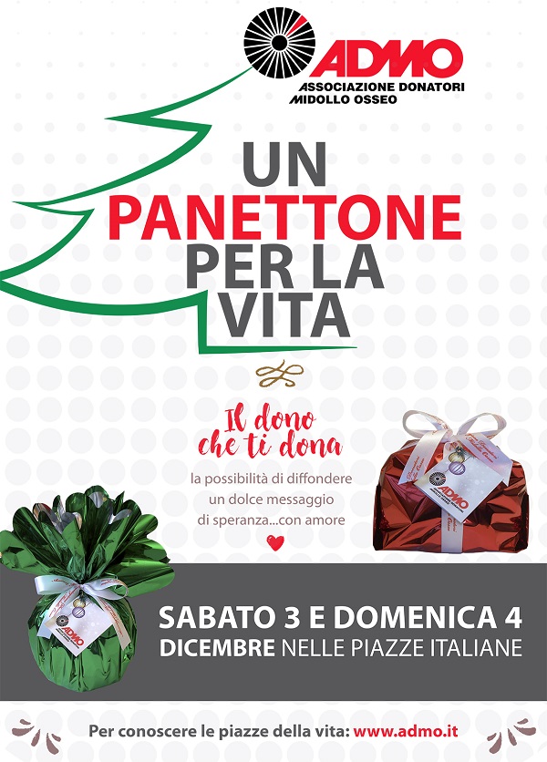Nei gazebo e nei desk ADMO allestiti per l’occasione potrete trovare, a fronte di un’offerta, panettoni e pandori di qualità racchiusi in eleganti confezioni, e soprattutto potrete chiarire ogni dubbio e ricevere tutte le informazioni necessarie per diventare donatori di midollo osseo.
