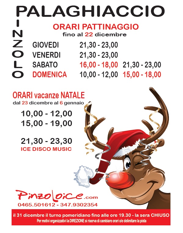 • Orari Palaghiaccio di Pinzolo fino al 6 gennaio 2013