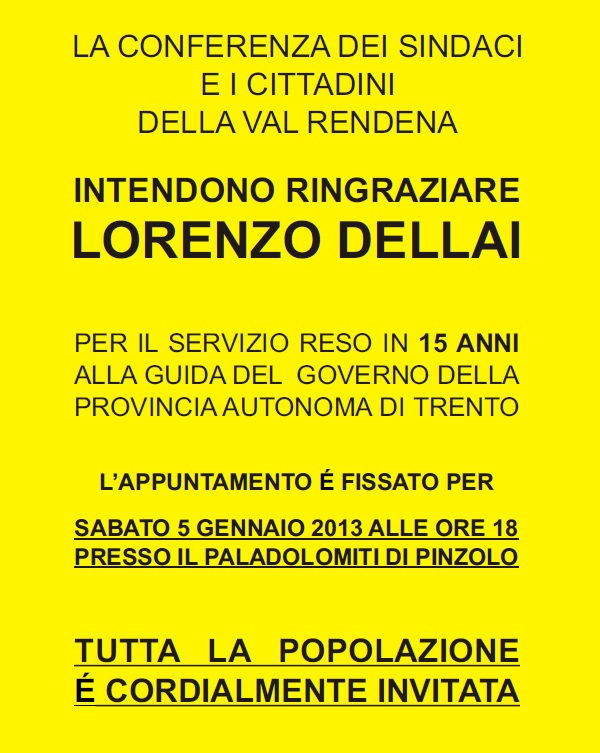Paladolomiti 5 gennaio: Conferenza di ringraziamento a Dellai