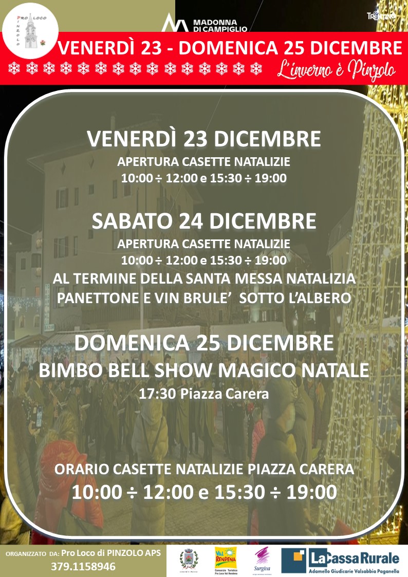 • Pinzolo, domenica 25 dicembre ore 17.30: Magico Natale con Bimbobell in piazza Carera