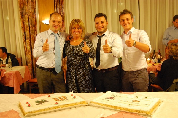 Hanno voluto condividere con amici, familiari collaboratori e autorità di Pinzolo e del loro paese d’origine, Fontanellato nel parmense (celebre per la rocca affrescata dal Parmigianino), dove conducono da tempo altri ambienti significativi, la soddisfazione per il loro primo anno di attività in Trentino, organizzando una simpatica serata conviviale con Messa a san Lorenzo, visita guidata agli affreschi dei Baschenis in san Vigilio, una cena “speciale” al “Casteluce” a base di prodotti tipici trentini e di leccornie padane, il tutto allietato da orchestrina, vocalist e karaoke. Sono cinque soci, Paolo, Massimo, Lorella, Andrea e Matteo, impegnati nel campo della ristorazione e dell’accoglienza ricettiva, che a Pinzolo nell’ottobre 2009 avevano preso in gestione l’albergo “ai Mughi” e l’Hotel Funivie Casteluce suddividendosi compiti e responsabilità in ragione della competenze e delle attitudini specifiche di ognuno. Di carattere aperto ed espansivo sono riusciti ad entrare nel tessuto sociale della comunità, a farsi stimare per l’impegno e la qualità del lavoro e delle iniziative intraprese, ed a farsi voler bene da tutti, ospiti e gente del posto. “Abbiamo letto nei giorni scorsi sul Sole 24 – sottolinea Andrea Pasquali, anima e coordinatore del gruppo – che dappertutto c’è crisi, che l’economia segna il passo. Ebbene noi siamo qui a voler dimostrare il contrario”. Durante la seduta interventi dell’assessore comunale Luciano Caola, di autorità venute dall’Emilia, di rappresentanti delle associazioni e della cultura, che si sono complimentati con i giovani imprenditori, hanno offerto il destro ad alcune considerazioni e riflessioni sullo stato dell’arte del turismo e sull’importante ruolo di stimolo esercitato da quanti sono venuti quassù da fuori e sulle novità portate da loro per lo sviluppo dell’offerta turistica (vedi pizzerie, rinnovo di ambienti ed altro).[/A_CAPO]