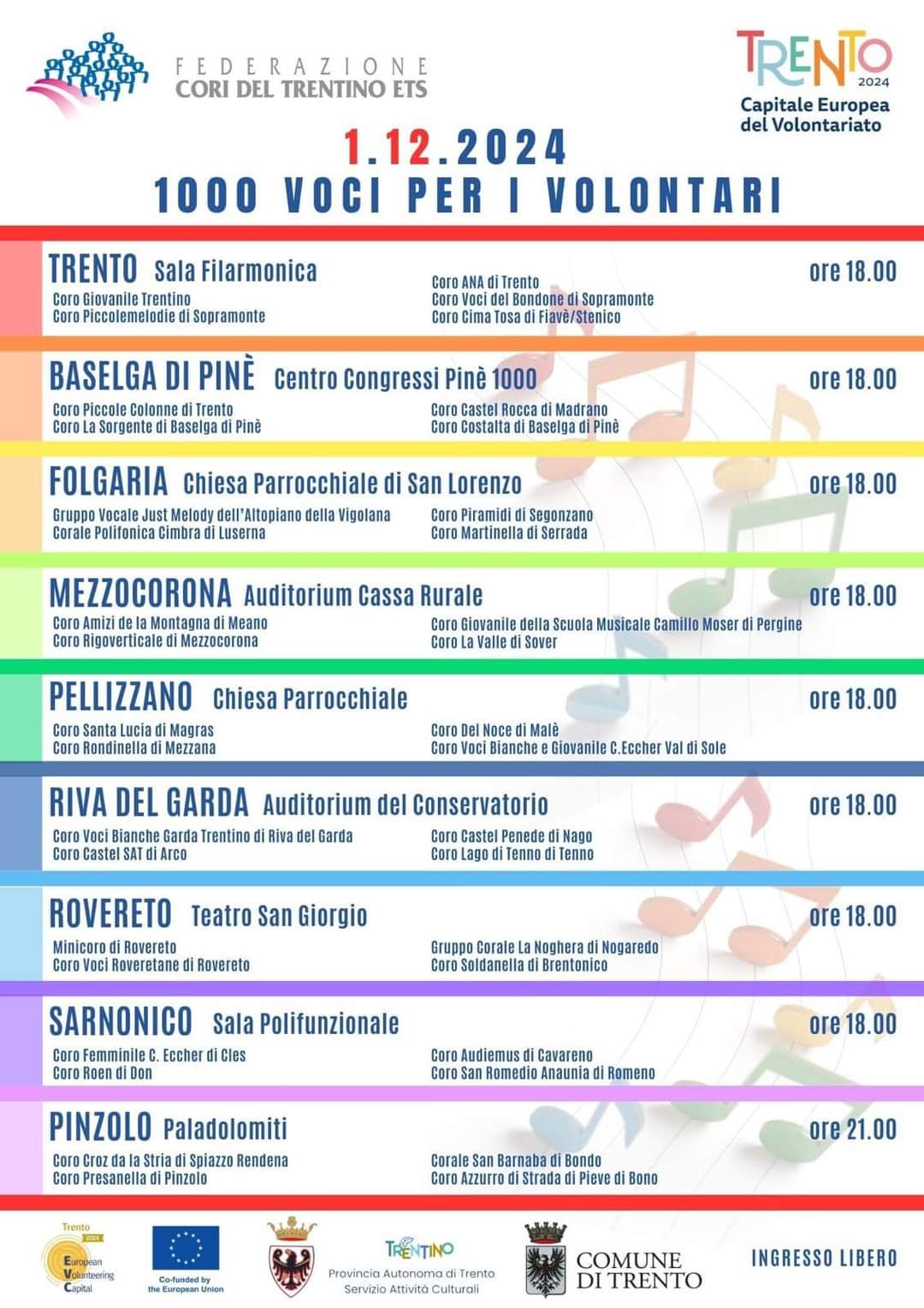 Pinzolo Paladolomiti ore 21 Domenica 1.12.2024 “1000 voci per i volontari”