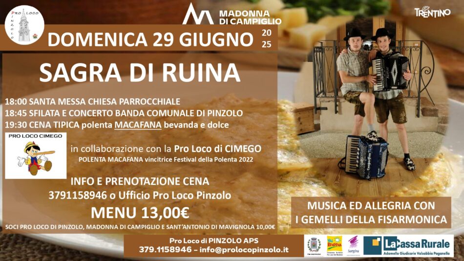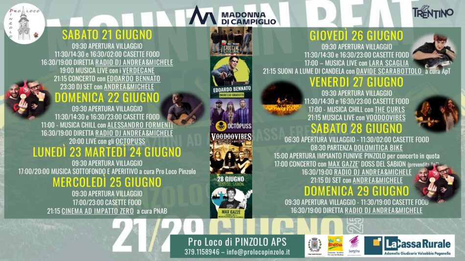 • Pinzolo: Programma da sabato 21 a domenica 29 giugno 2025