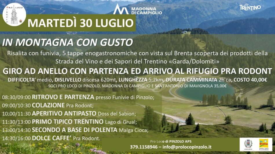 • Pro Loco Pinzolo: Programmazione manifestazioni dal Lunedì 29 luglio al Domenica 4 agosto 2024