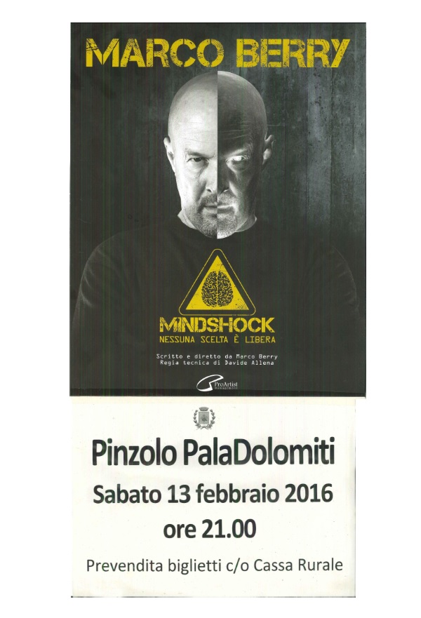 Mindshock: nessuna scelta è libera” scritto e diretto dalla “Iena” Marco Berry, andrà in scena sabato 13 febbraio al Paladolomiti.