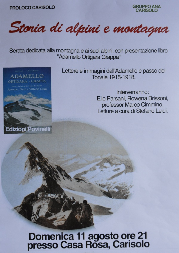 Il volume edito da Povinelli ” ADAMELLO – ORTIGARA – GRAPPA”, lettere dalla grande guerra, dei fratelli Antonio, Piero e Vittorio Leidi, di Elio Parsani e Rovena Brisson ha