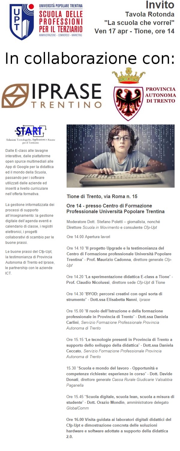 • Tione, 17 aprile – Tavola rotonda: La scuola che vorrei