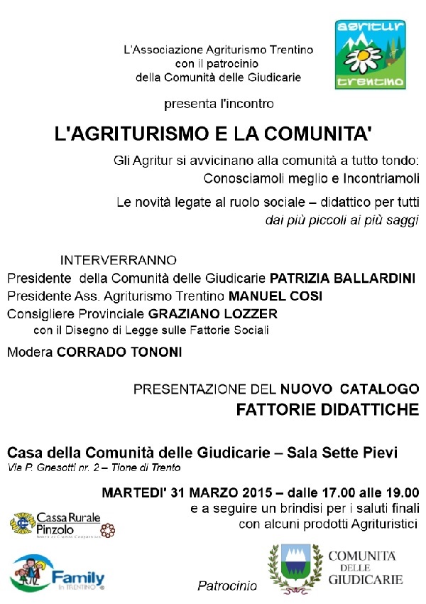 • Tione, 31 marzo: L’Agriturismo e la Comunità