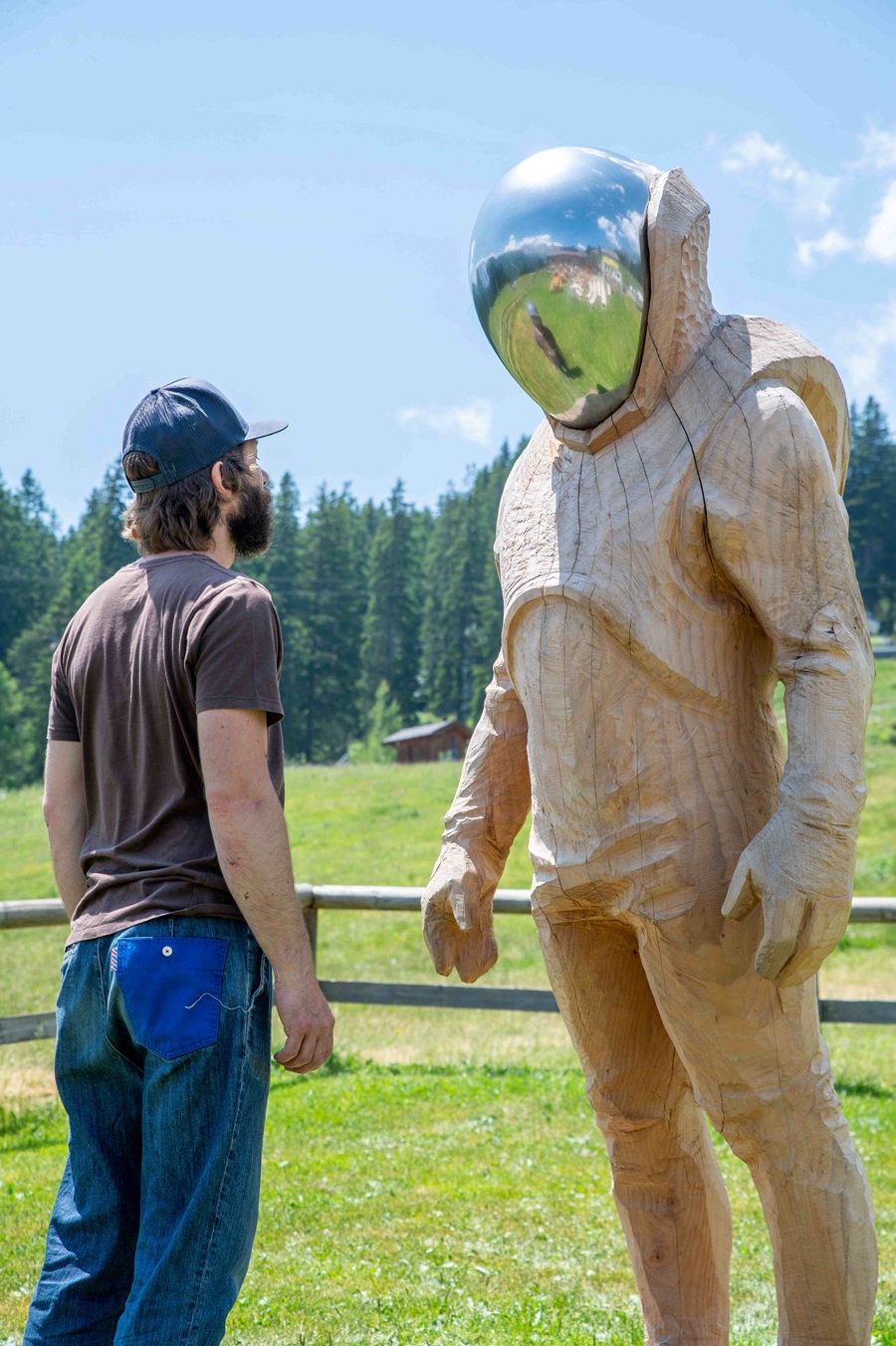 Madonna di Campiglio, 24 giugno 2025 – Un astronauta di legno alto 2,30 metri “atterra” a 1.550 metri d’altitudine, dando ufficialmente il via a “Space Days Series: Mapping the Unknown – Madonna di Campiglio 2025”, la nuova mostra dell’artista Fabiano de Martin Topranin ospitata dal Rifugio Patascoss. L’opera, intitolata Space Days Vol. 3, arriva direttamente da Campo Imperatore per insediarsi nello spazio antistante al rifugio, avviando un inedito dialogo tra arte contemporanea e paesaggio alpino. Questa installazione è solo la prima di una serie di sculture in legno a tema spaziale che animeranno il rifugio per tutta l’estate, trasformando Patascoss in un’esperienza immersiva tra arte, natura e suggestioni cosmiche.